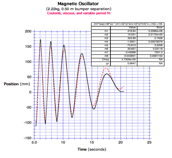position (time) data collected and graphed. Simple approximate fits reveal the character of their